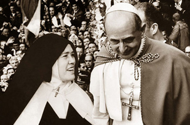 lucie_01Pak se tu objevují osoby: bíle oblečený biskup („tušili jsme, že by to mohl být Svatý otec“) další biskupové, kněží, řeholníci a řeholnice a konečně mužové a ženy všech tříd a sociálních vrstev. Zdá se jako by papež šel přede všemi, chvějící se a trpící všemi těmi hrůzami, jež ho obklopují. Nejen domy toho města jsou polorozbořené – papež kráčí mezi mrtvolami zabitých. Cesta církve je popisována jako Via Crucis, jako putování údobím násilí, ničení a pronásledování. V tomto obraze lze objevit znázorněné dějiny celého století. Jako jsou místa země shrnuta ve dvou obrazech – hora a město orientující se na kříž – tak i časy jsou prezentovány sevřeným způsobem: ve vidění můžeme rozpoznat uplynulé století jako století mučedníků, jako století utrpení a pronásledování církve, jako století světových válek a mnoha místních válek, které naplnily celou jeho druhou půli a přinesly s sebou nové formy krutosti. V ,zrcadle‘ tohoto vidění můžeme vidět svědky víry celých desetiletí. V této souvislosti se zdá vhodné uvést větu sestry Lucie, kterou napsala v dopise Svatému otci 12. května 1982: „Třetí část ,tajemství‘ se vztahuje na slova Naší Paní: ,Jestli ne, (Rusko) rozšíří své bludy po světě a bude podněcovat války a pronásledování církve. Dobří lidé budou mučeni, Svatý otec bude muset hodně trpět, mnohé národy budou zničeny.'“